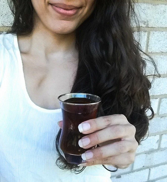 The tiny and more traditional glass is often beautiful. The one in my hand was given to me as a gift and they came all the way from Turkey! It's hard to see in the picture but there is absolutely gorgeous engravings on this glass which I love about them. They are great to bring out for a party. These also remind me of my childhood because Iranians, like many other cultures traditionally drink tea from smaller glasses like these.