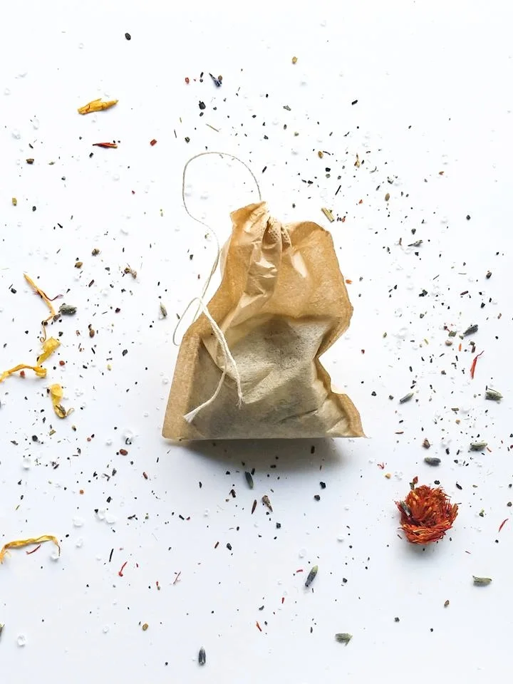 I put two tablespoons into each tea bag. Make sure to tighten the top of the bag and tie it up. I dropped a couple of these bags in my bath and it was wonderful. Don't expect your bath to brew to the color like your tea does but you can expect super soft skin when you're done! Just like when i drink tea I felt very calm during this bath.