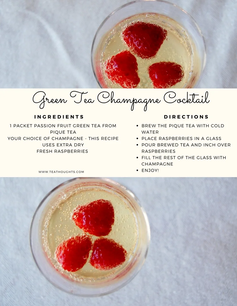 In my research, I concluded that raspberries and champagne were a great combo for this tea! I did not sweeten this drink but if you like sweet drinks, simply add honey or sugar to the tea or the finished drink!